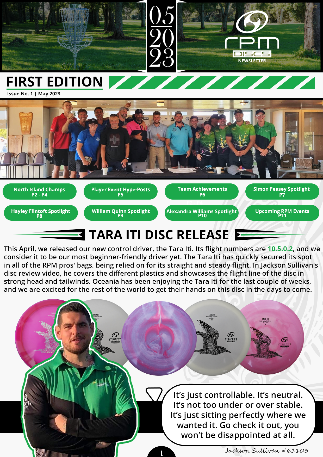 Secondly, the Newsletter offers the opportunity for our team members to share their disc golf endeavors with our followers. If you have any exciting news, or events that you will be hosting, we encourage you to reach out to talia@rpmdiscs.com for the chance to be featured in the Newsletter. We will also be looking at potentially creating a mini monthly competition of best disc dyes. More info on that later.