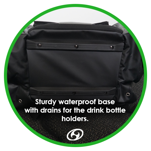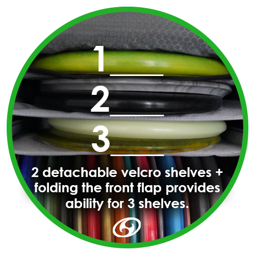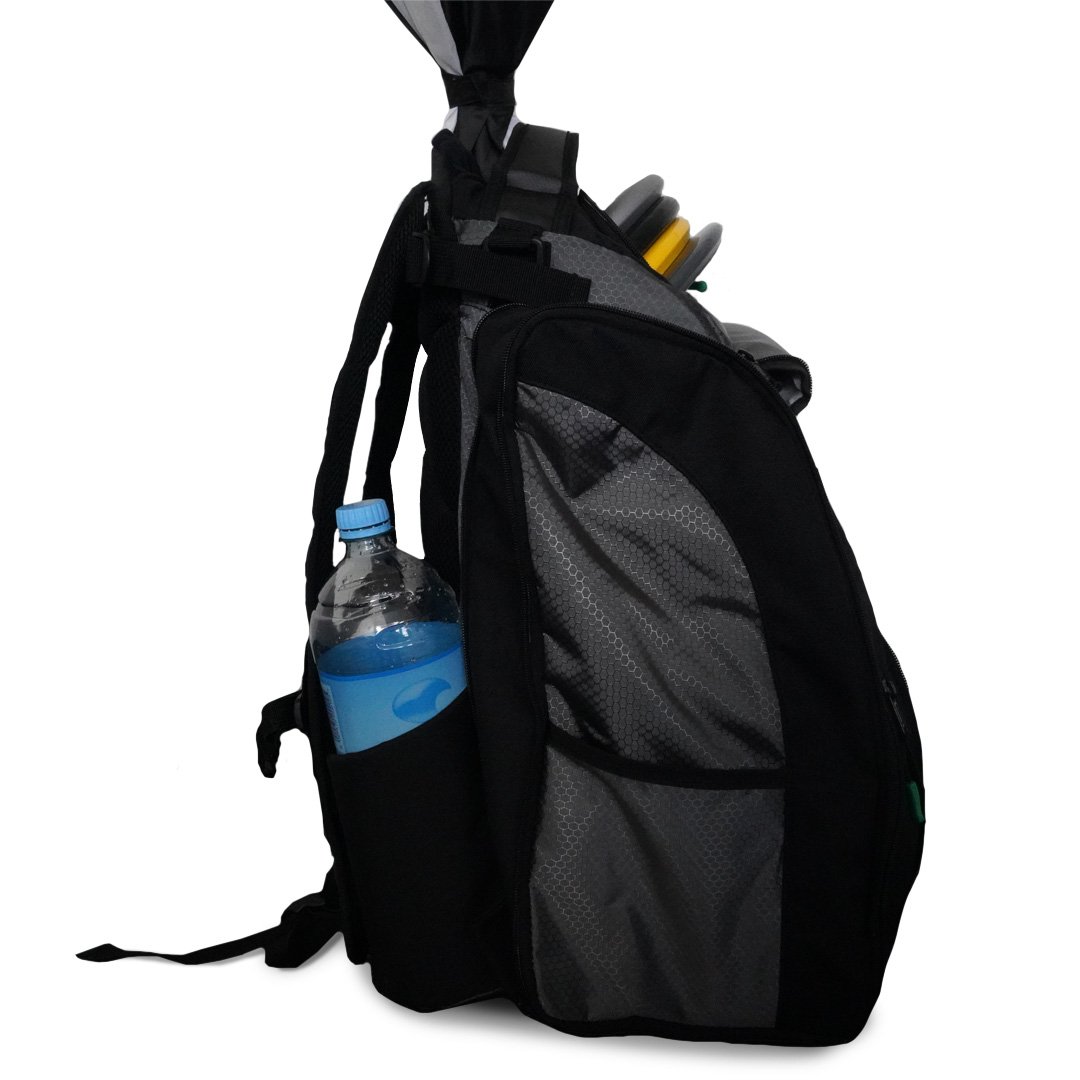 The structure of the Tahi Nui is sturdy and stiff straight up the back, which means it will stand upright by itself. The base of the bag is waterproof and includes two drains for the water bottle holders. The bag can comfortably hold 20-30 discs and has the maximum capacity for up to 40 discs.
