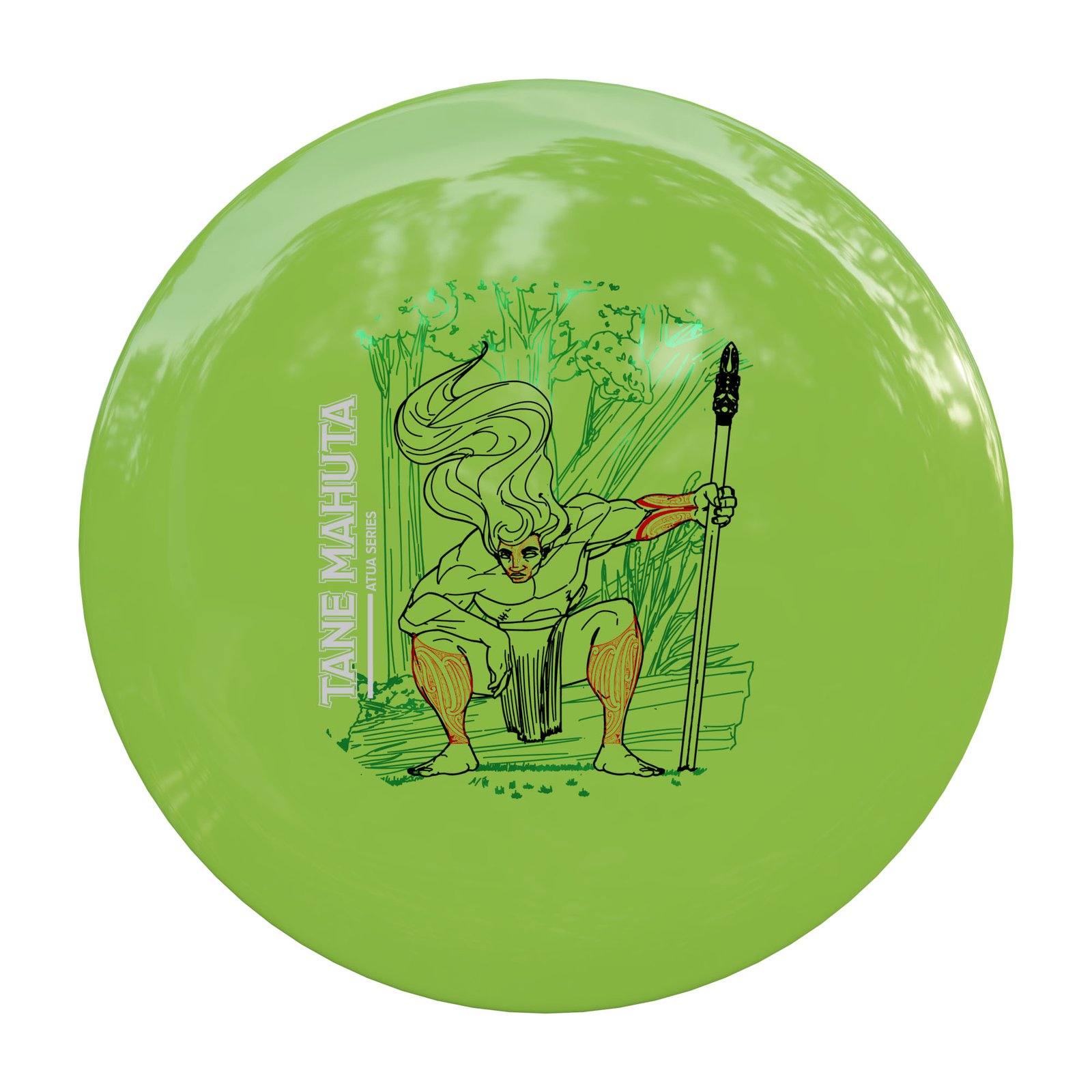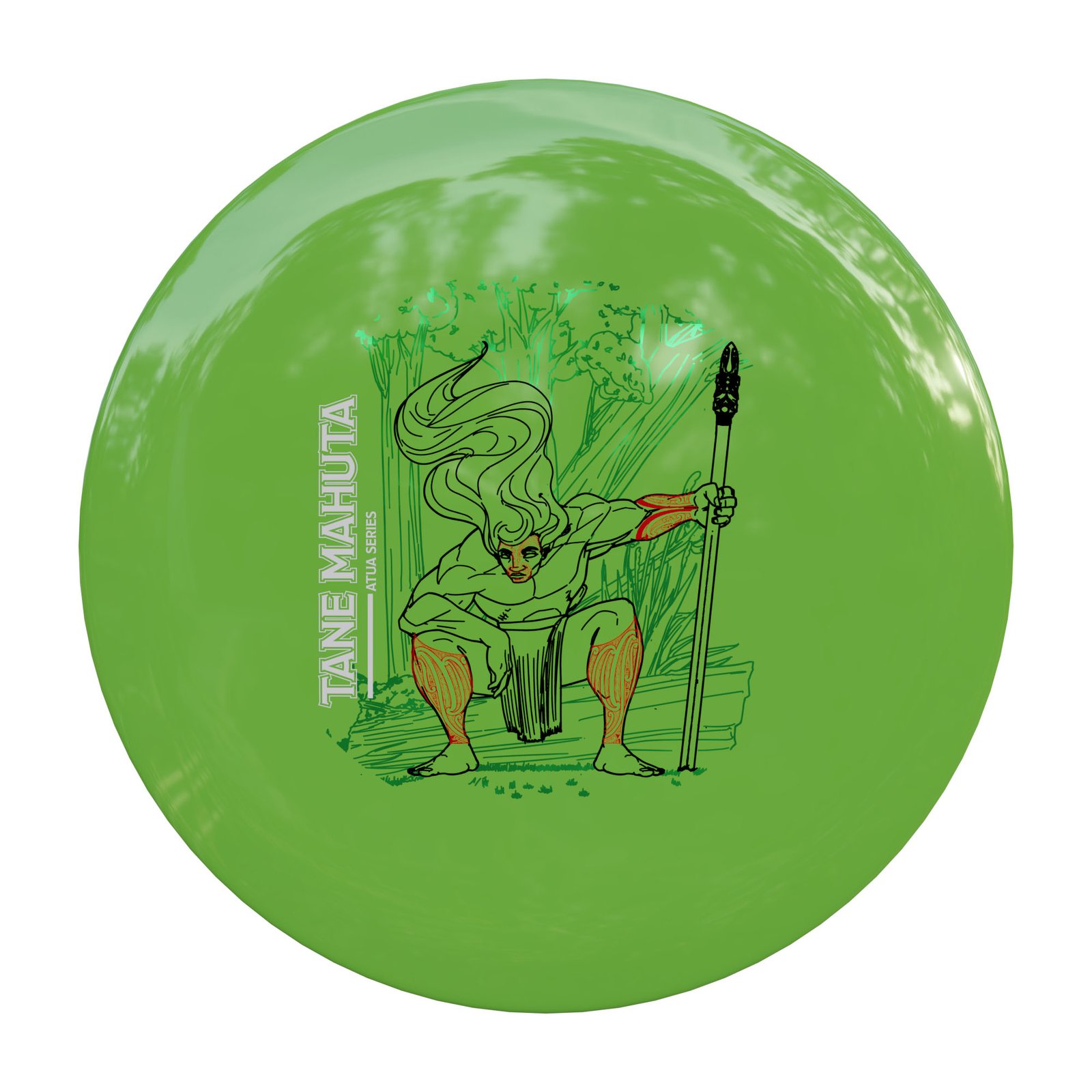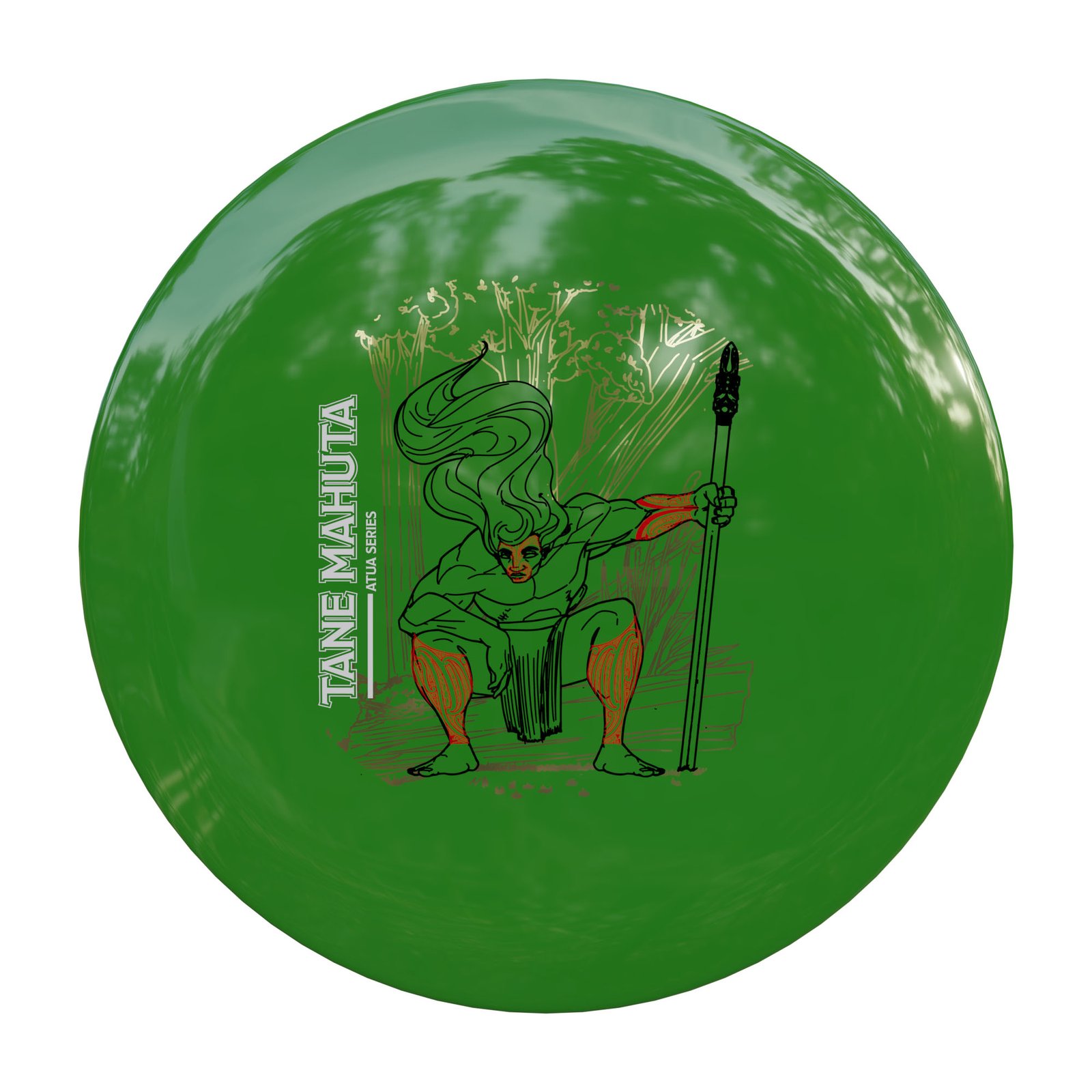 The idea of having an Atua (Māori Gods) series of discs came about when practicing throwing discs and trying to connect to the disc. As a hunter and gatherer in Aotearoa (New Zealand) when I hunt or dive, I connect to the land or the sea and it brings peace and a tranquil sense of belonging allowing me to reset. I wanted to connect to the disc and visualize its path of travel slowing it down and almost pausing everything around it. This was the catalyst for connecting the discs to the Atua. We had to think of what Atua was appropriate for the disc which is where Tāne Mahuta came in. The disc itself was called the Pīwakawaka (fantail) that you will find chatting to you as it passes through the forest. The colours of the disc are found in the forest. Tāne himself in Māori mythology separated his mother and father to bring light into this world and now also bringing light of our people to you using this story on the disc. If you scan the QR code and you can discover more of Tāne. Perhaps its safe to say that no other Atua is more aspired and revered than Tāne. His relevance to us has remained throughout the generations and his character continues to inspire us in our daily lives. All the more, we need to pass on the stories of his unmatched persistence and his level-headed disposition. His persistence and determination is unmatched, as it emanates in the narrative of how he pushed his parents apart. The story of his bravery and boldness inspires us, especially in the story of how he acquired the three baskets of knowledge in spite of all the challenges and obstacles. He inspires us to maintain harmonious relationships amidst differences in order to achieve a common goal.